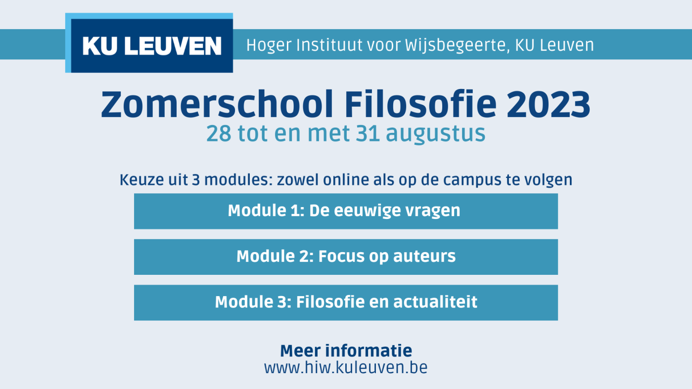 De inschrijvingen voor de zomerschool filosofie aan het Hoger Instituut voor de Wijsbegeerte van de KU Leuven zijn gestart. In de module over ‘eeuwige vragen’ geef ik een les over godsbewijzen.