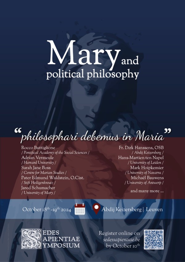 Registration is now open for the 2024 Sedes Sapientiae Symposium on Mary and political philosophy. It will take place on October 18-19, at the Keizersberg abbey in Leuven, Belgium.